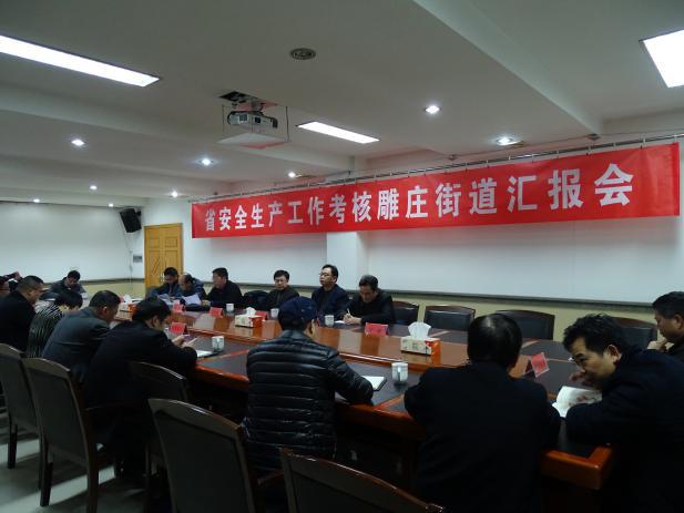 1月17日下午,省安监局副局长陈忠伟带领省安委会考核组对雕庄街道2017年安全生产工作进行现场考核。