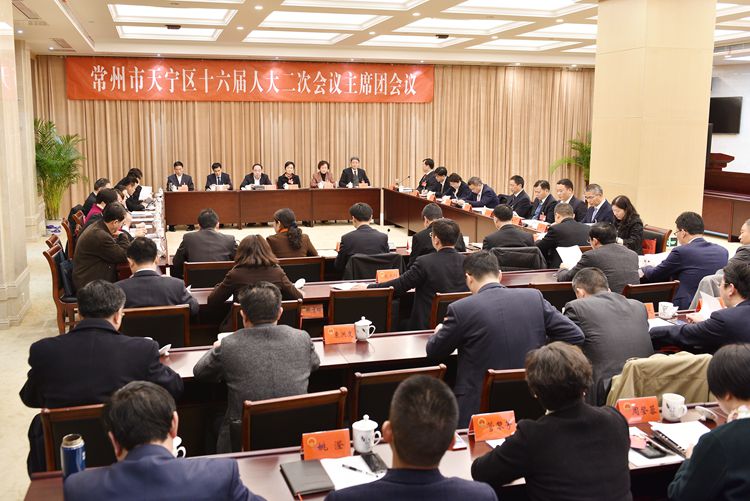 1月3日下午,区十六届人大二次会议主席团举行第三次会议。会议由区委书记宋建伟主持。 会议听取了各代表团审议区人民政府工作报告和计划报告、财政报告情况的汇报。 会议讨论通过了《常州市天宁区2017年财政预算执行情况与2018年财政预算草案的报告》的审查报告(草案)。
