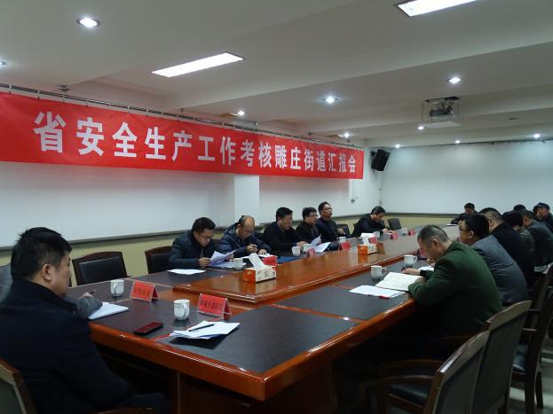 1月17日下午,省安监局副局长陈忠伟带领省安委会考核组对雕庄街道2017年安全生产工作进行现场考核。