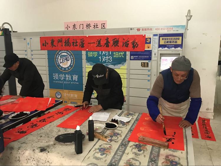 春节是中国特有的传统节日,按照传统习俗,家家户户总要贴上新的春联,以示辞旧迎新,喜迎新春佳节。为迎接新春到来,1月18日上午,小东门桥社区开展迎新年送祝福联谊活动,邀请了红梅书画苑的十几位书法家免费为居民写春联。